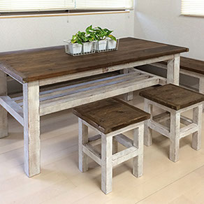 廃材や古材を使ったオリジナルの家具や雑貨を制作しております。ヴィンテージなテーブルや椅子、シェルフ等のオーダーも承りますのでお気軽にご相談ください。