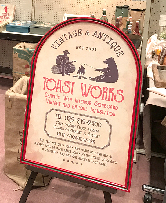 TOAST WORKSは茨城県を拠点に看板制作、グラフィックデザイン、Webデザイン、インテリアデザイン、店舗工事、アンティーク販売を手がけているデザイン会社です。「ものづくり」をテーマにお客様と共に創ることを楽しみ、柔軟な視点と発想、確かな技術力で常に新しい価値を提供していきたいと考えています。